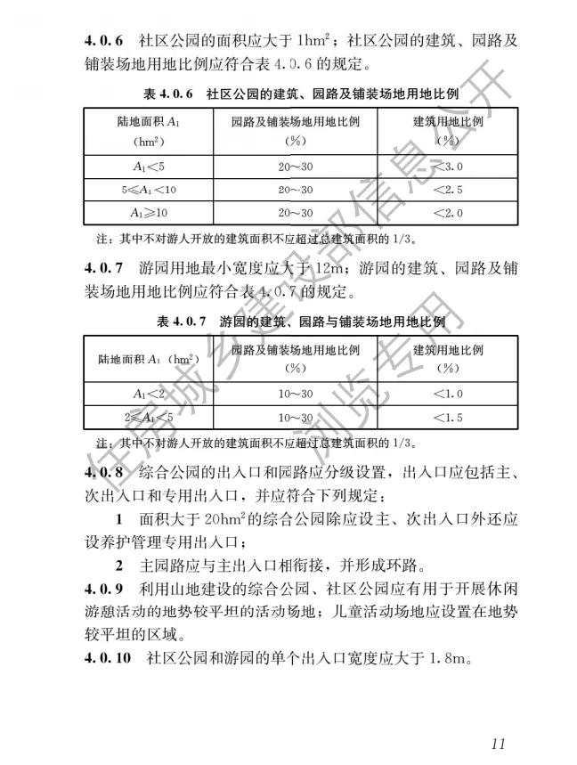 2.《公園設(shè)計規(guī)范》GB 51192-2016第4.1.3、4.1.7、5.1.3、5.2.4、5.3.3、9.1.4條