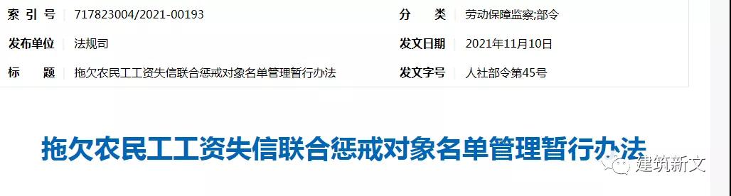 行業(yè)動態(tài)|人社部出臺《拖欠農(nóng)民工工資失信聯(lián)合懲戒對象名單管理暫行辦法》 附解讀